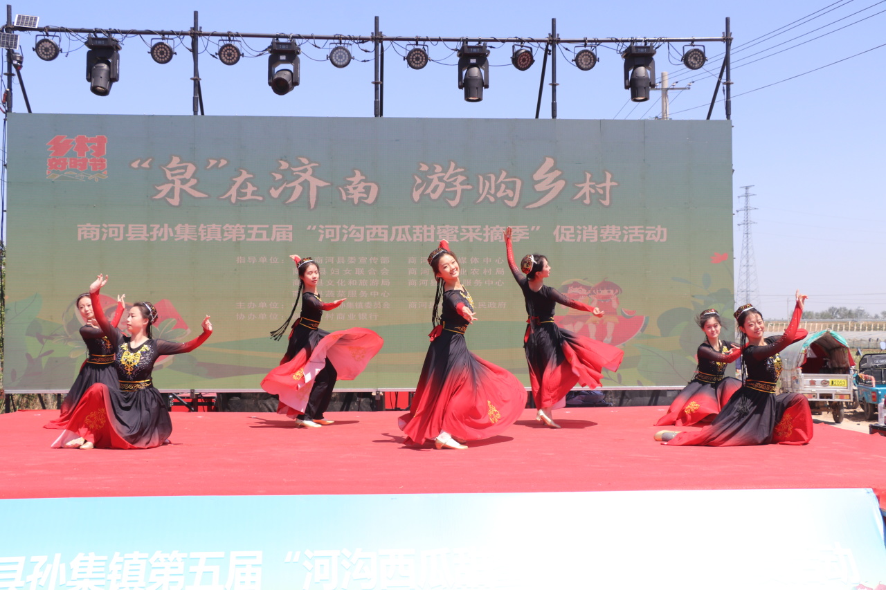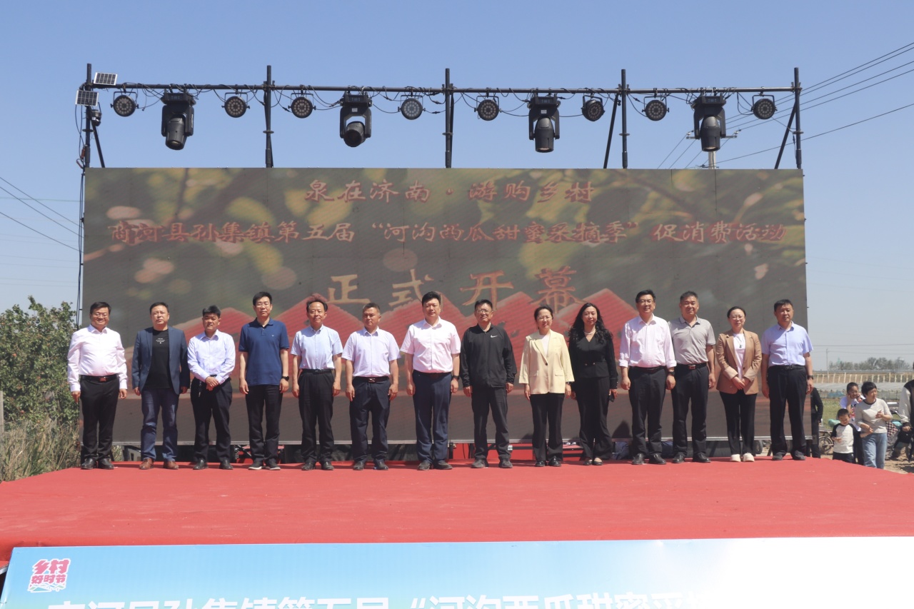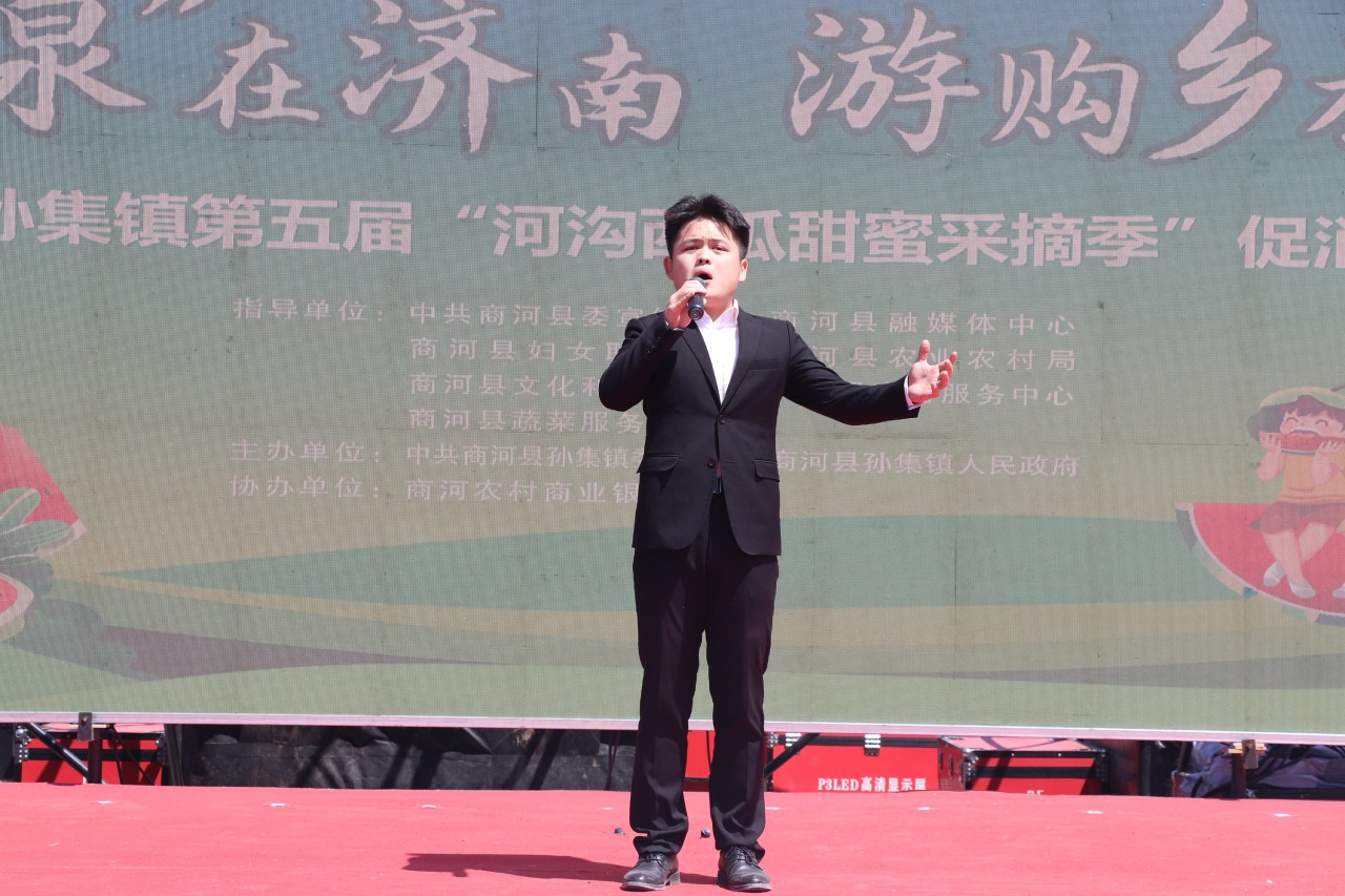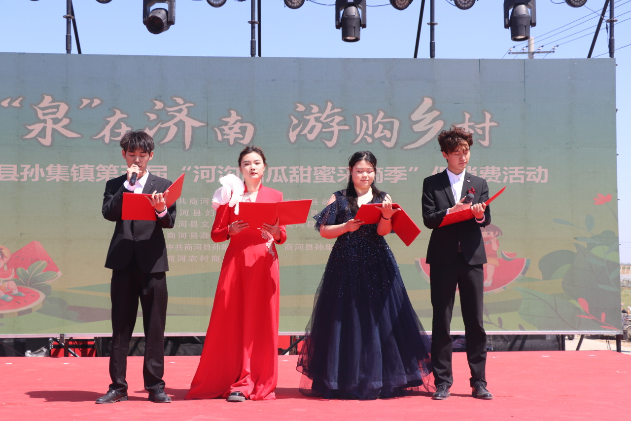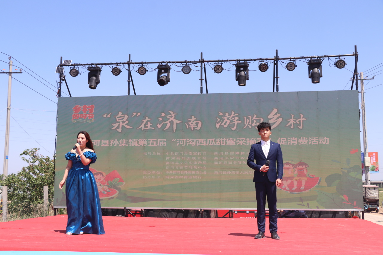 鲁网5月18日讯 5月17日上午,“泉在济南·游购乡村”商河县孙集镇第五届“河沟西瓜甜蜜采摘季”促消费活动在孙集镇卢家河沟村盛大开幕!本次活动时间为5月17日至5月19日,以采摘体验为核心,聚焦 “食、玩、游、购” 多元体验,为游客带来一场全方位、沉浸式的游玩盛宴。这里有令人陶醉的文艺演出、活力四射的广场舞大赛及热闹非凡的黄河大集,更有充满趣味的 “吃瓜群众” PK 赛、考验智慧的掼蛋比赛。齐鲁师范学院音乐学院、县人大、县政协、县委宣传部、县融媒体中心、县妇联、县农业农村局、县文化和旅游局、县商务服务中心、县蔬菜技术服务中心、商河农商银行、孙集镇相关负责同志参加开幕式。