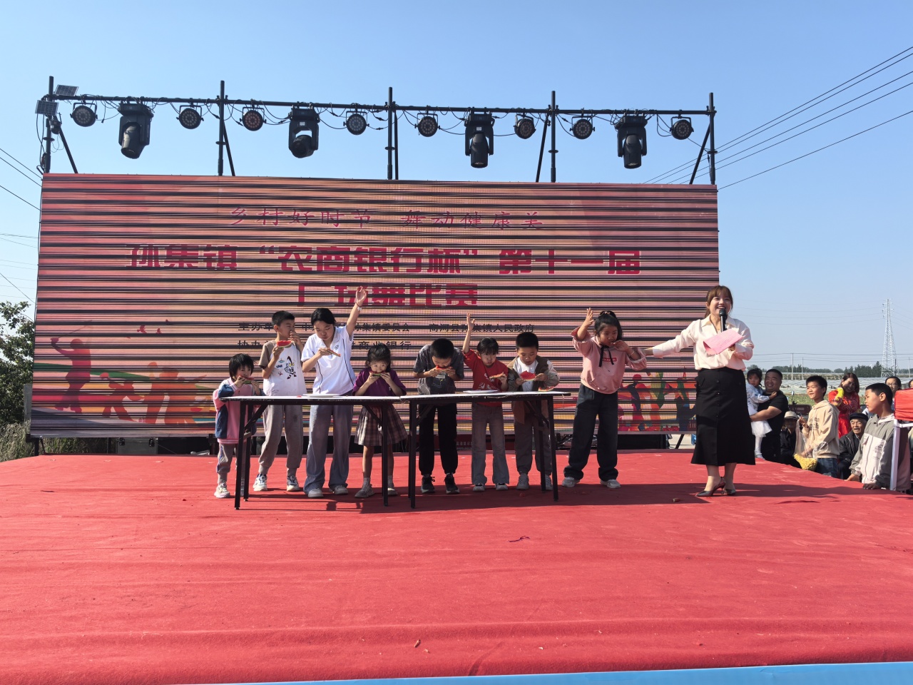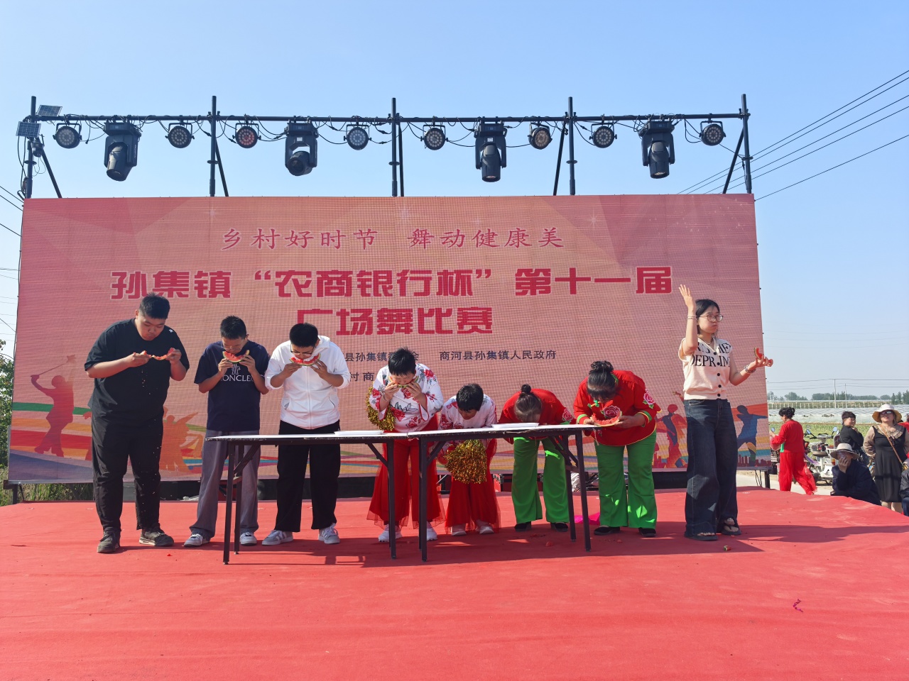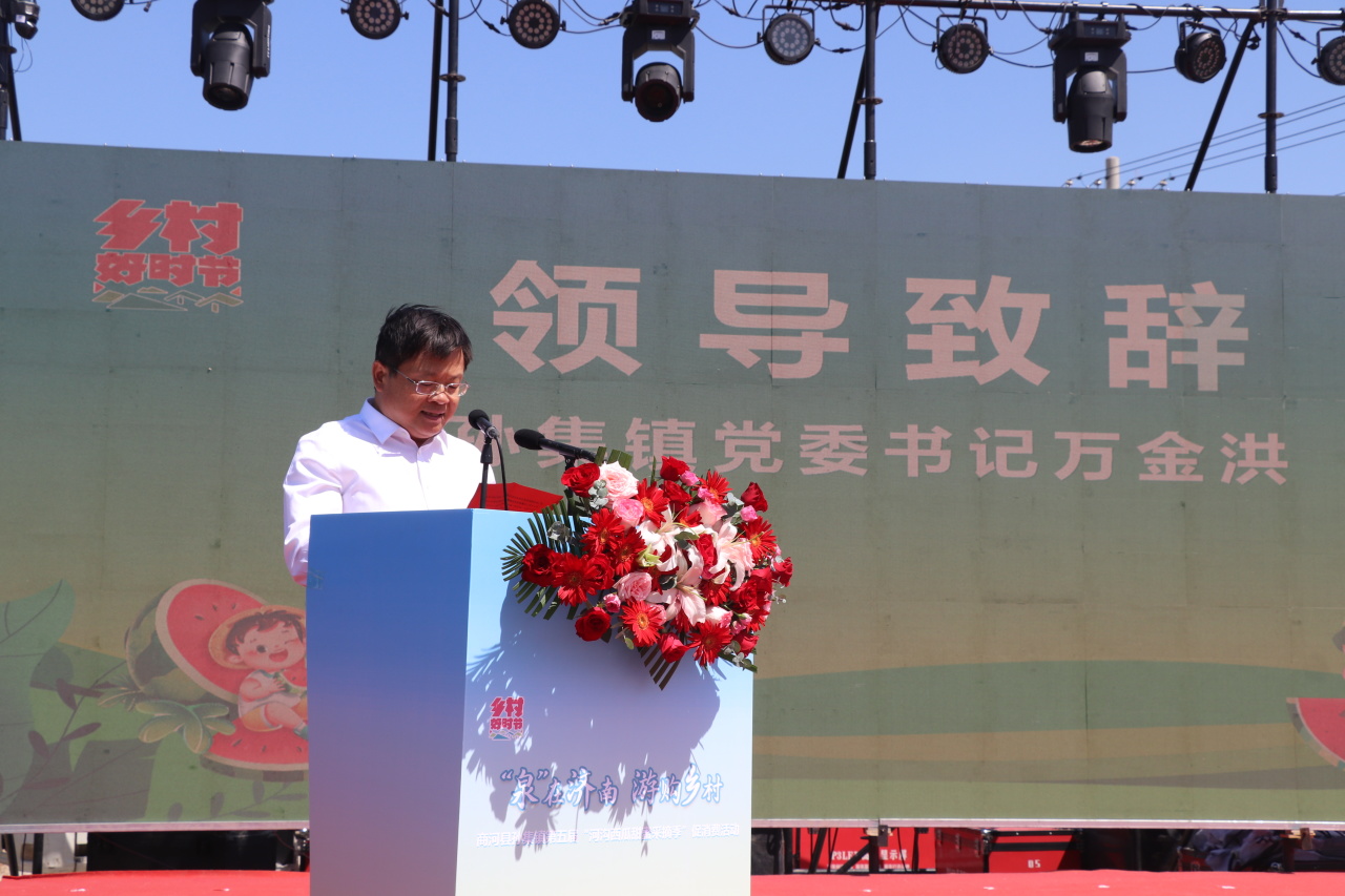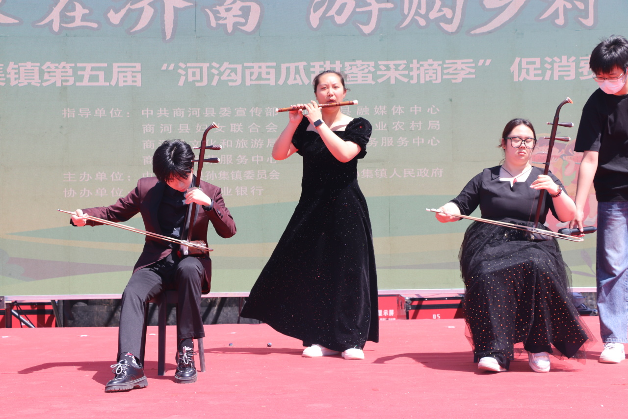 鲁网5月18日讯 5月17日上午,“泉在济南·游购乡村”商河县孙集镇第五届“河沟西瓜甜蜜采摘季”促消费活动在孙集镇卢家河沟村盛大开幕!本次活动时间为5月17日至5月19日,以采摘体验为核心,聚焦 “食、玩、游、购” 多元体验,为游客带来一场全方位、沉浸式的游玩盛宴。这里有令人陶醉的文艺演出、活力四射的广场舞大赛及热闹非凡的黄河大集,更有充满趣味的 “吃瓜群众” PK 赛、考验智慧的掼蛋比赛。齐鲁师范学院音乐学院、县人大、县政协、县委宣传部、县融媒体中心、县妇联、县农业农村局、县文化和旅游局、县商务服务中心、县蔬菜技术服务中心、商河农商银行、孙集镇相关负责同志参加开幕式。