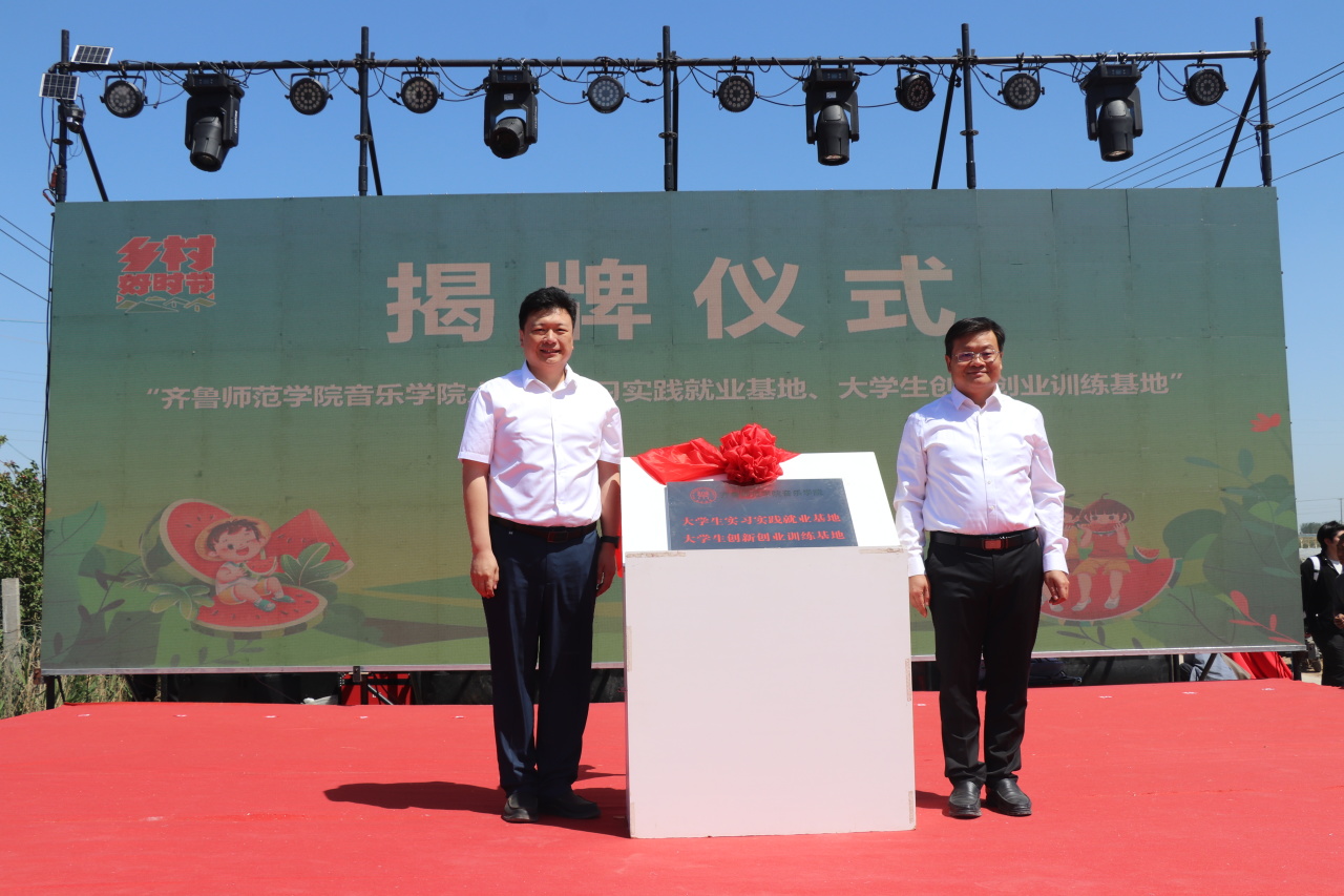 阴小建、万金洪共同为“齐鲁师范学院音乐学院大学生实习实践就业基地、大学生创新创业训练基地”揭牌。